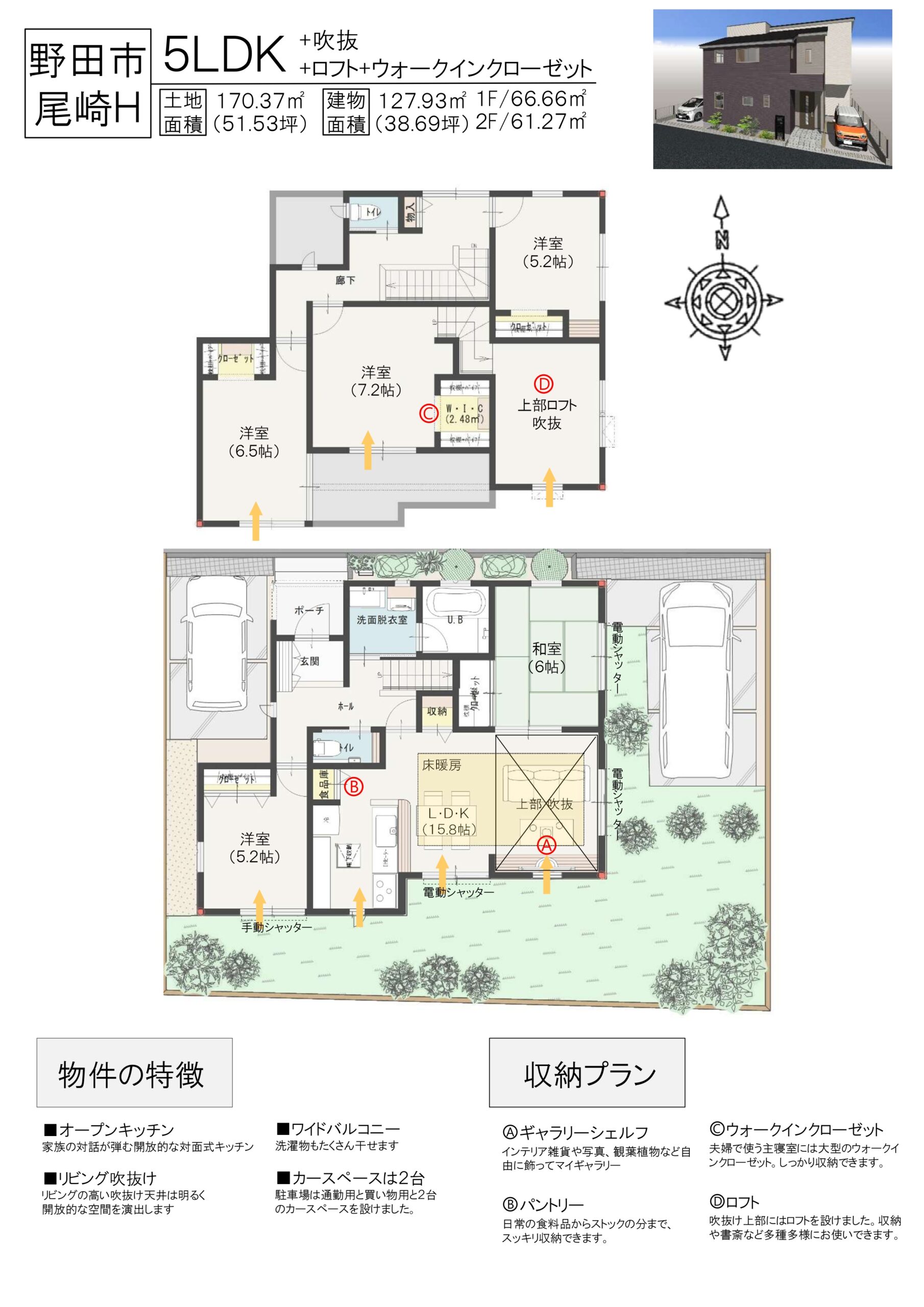 | 物件名 | 野田市尾崎H号棟 新築戸建 |