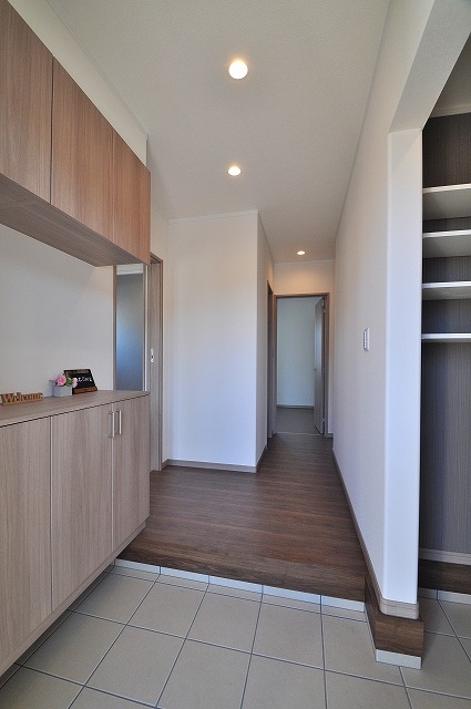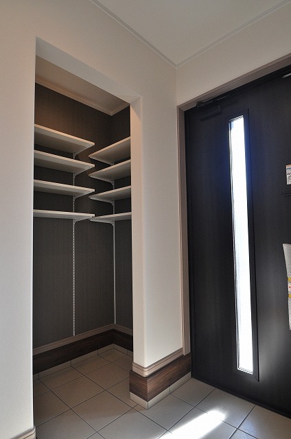 ゆとりある玄関にはシューズクロークを備え、ベビーカーやゴルフバッグなどもすっきり収納。いつでも整った印象を保てる、上品で心地よいおもてなし空間です。