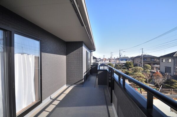 主寝室、洋室から出入りできる南向きバルコニーは陽当たり良好で、お布団や洗濯物も気持ちよく乾きます。毎日の家事が快適に、心地よい光が差し込むスペースです。